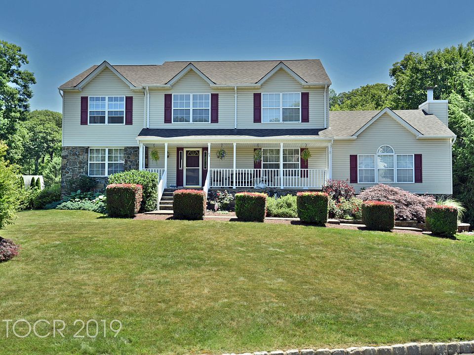 ENJOY RELAXING ON YOUR INVITING ROCKING CHAIR FRONT PORCH, AND ENTERTAINING ON YOUR DECK OVERLOOKING YOUR GRECIAN, HEATED IN-GROUND POOL AND PATIO, ON A SOUGHT AFTER CRESCENT ROADWAY LOCATION. THE OLDE MILFORD ESTATES NEIGHBORHOOD OFFERS PUBLIC WATER, PUBLIC SEWER AND NATURAL GAS. THIS OUTSTANDING CENTER HALL COLONIALFEATURES AN OPEN SPACIOUS FLOOR PLAN. THE 23 X 22 GREAT ROOM HAS A CATHEDRAL CEILING, , AND A FLOOR TO CEILING FIELDSTONE FIREPLACE. THE UPDATED EAT-IN KITCHEN HAS GRANITE COUNTERTOPS, OAK CABINETRY, TILE FLOORING AND BACKSPLASH AND IS OPEN TO THE GREAT ROOM. THE FORMAL DINING ROOM AND ENTRANCE FOYER ALSO HAVE HARDWOOD FLOORS. THE FORMAL LIVING ROOM HAS LUXURIOUS CARPETING. FIRST FLOOR BEDROOM/OFFICE. THE FULL BASEMENT HAS HIGH CEILINGS AND LEADS OUT TO THE TWO CAR GARAGE.