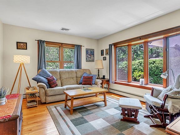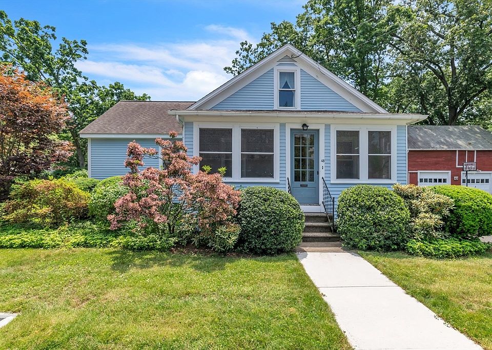 HIGHEST AND BEST BY MONDAY, 7/1 @ 5:00. Location, Location!!! Beautiful in-town home on a quiet side street, just blocks from everything that downtown Easthampton has to offer. This home is one floor living at its best, two bedrooms, one bath, dining room/den currently being used as an office with wood floors. Enjoy views of Mt. Tom from the large bow window in the living room, or sit in the enclosed front porch with your morning coffee. Eat-in kitchen with corian counters and an old fashioned pantry for all your storage needs. Detached garage with electric door opener. Professional landscaping with beautiful perennial gardens in your large private backyard. Walk to town for dinner or ice cream, or to the peaceful nature trails of the nearby conservation area. As per the owner, living room addition was added in 1992, Buderous boiler-2009, Central Air, Roof-2011, many newer Anderson windows, updated electrical. This home has been well maintained and is move in ready.