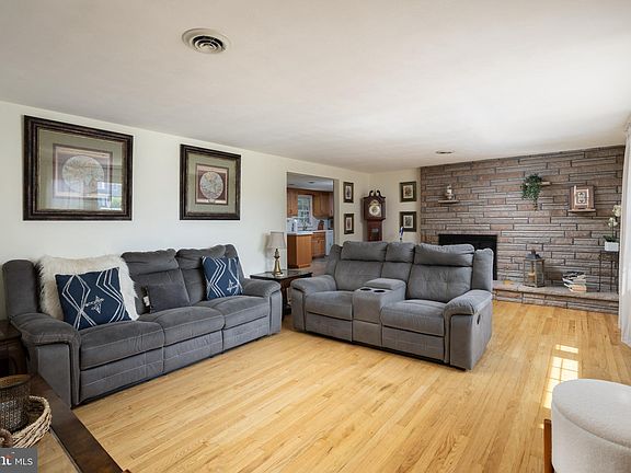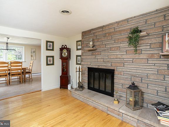 Experience the charm of Chesterfield Township country living in this beautiful ranch-style home. This inviting residence offers a blend of comfort and style, perfect for those seeking a serene lifestyle amidst preserved farmland while enjoying modern amenities. Step into the great kitchen, equipped with ample counter space and a large dining area that’s perfect for family gatherings or entertaining guests. The spacious living room features a cozy stone fireplace, creating a warm and inviting atmosphere. With 3 bedrooms and 2 updated baths, this home provides ample space for your family’s needs. Hardwood floors run throughout the home, adding a touch of elegance. The property boasts abundant closet space, ensuring you’ll never run out of storage. The full finished basement is a highlight, featuring a brick fireplace and a pellet stove, making it an ideal spot for relaxation or entertaining. Enjoy the peaceful surroundings from the enclosed sun porch, a perfect place to unwind in any season. Modern conveniences include baseboard hot water heat and central air to keep you comfortable year-round. The exterior of the home is just as impressive, with a concrete driveway leading to a 2-car garage. Outdoor living is a delight with a spacious yard, an outdoor patio complete with a fire pit, and a 10x10 brick shed for additional storage. The property is surrounded by preserved farmland, providing a picturesque and private setting.Despite its tranquil location, this home is conveniently situated just minutes from major interstate highways, including Route 295 and the New Jersey Turnpike, offering easy access to nearby cities and amenities.Don’t miss the opportunity to own this beautiful ranch-style home in Chesterfield Township. Schedule a viewing today and discover the perfect blend of country charm and modern living.