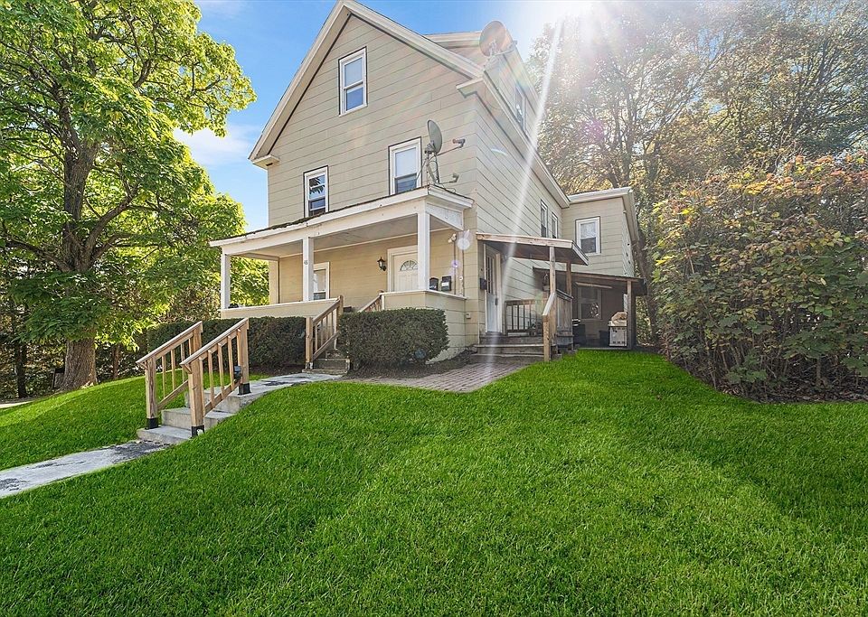 Great owner-occupied opportunity with a 4-bedroom unit that is currently vacant! This duplex is situated on a quarter-acre lot, presenting a solid opportunity for investment or residency. Unit 1, on the main level, includes two bedrooms and one bathroom. It has been home to long-term tenants for over eight years, with a straightforward layout and practical features. Unit 2 extends across the second and third floors, offering four bedrooms and one bathroom. Currently vacant, it provides ample space suitable for owner occupancy. Kitchens and bathrooms in both units were updated around 2000. The property features a detached two-car garage for parking or storage.A slate roof adds durability and historical value, designed to last for many years. Town requires repairs. Explore in person to see the full potential!