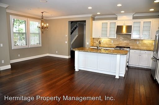 Upgraded 3 Bedroom/3 Bath Home for lease in Irvine For Lease; highly upgraded home in Woodbury. This is the Esplande Plan 4 model with one bedroom and full bath downstairs and 2 bedrooms and a spacious loft upstairs. This floor plan offers an abundance of open space with natural lighting from windows along one wall giving the great room of a living room, kitchen and formal dining area a spacious feel. One wall has a custom fireplace and built-in entertainment center. This home features as a gourmet kitchen with granite counters, custom tile backsplash, stainless steel appliances, custom sink and upgraded cabinetry. Oversized laundry room with abundance of cabinets and laundry room sink. There is also a custom built-in office desk and cabinets next to the laundry room. There is a large master bedroom adjoining a beautiful master bathroom with roman tub and seamless shower enclosure and large walk-in closet. This home has an abundance of natural stones, real, distressed bamboo wood flooring, custom paint, upgraded railing, baseboards and crown molding throughout, plantation shutters, recessed lighting, surround sound system and multi-room speakers, custom built-in cabinets and 2-car attached, garage with extra storage space. Walking distance to shopping and dining and Woodburys 9.5 acre recreation center/multi purpose room at the Commons. Enjoy Woodburys 7 resort style pools and spas, Fireplaces and barbecue areas neighborhood gardens,sand volleyball, basketball courts, tennis court,sport courts and more. (No Pets sorry) (RLNE2249113)