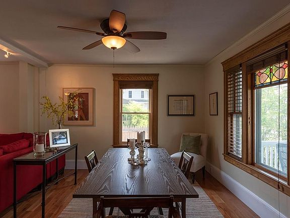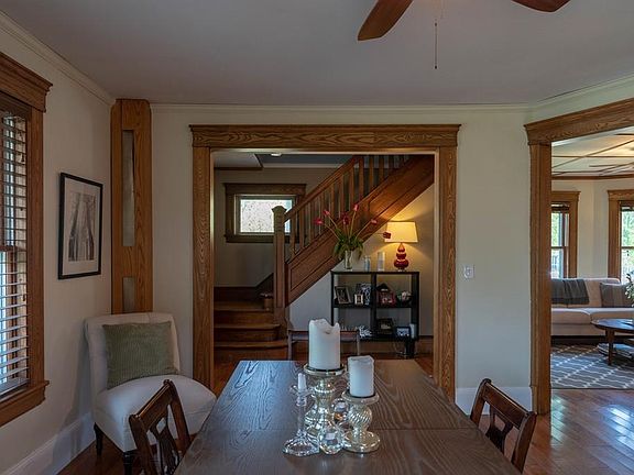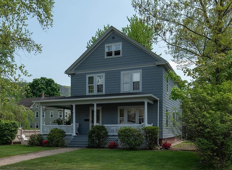 On a corner lot close to Easthampton center, this home blends classic New England architecture with a perfectly modern and open floor plan. Significant updates along with routine upkeep make this home truly move in ready. Tasteful renovations to the master and first floor bathrooms, a new roof in 2016, new gas boiler & new hot water heater, quartz kitchen countertops, flooring, and wine fridge are all welcome improvements. Rich wooden accents, built in cabinets, and twin stair cases showcase the excellent craftsmanship of the original construction. A wrap around deck provides a remarkable view of Mt. Tom and is a great place to entertain guests in the summer months. The home's two car garage has a separate storage area with ample space for garden tools and lawnmower. The partially fenced yard is neat and clean with mature plantings and a raised bed ready for a small vegetable garden. The love and care of the owner is clear in every room. This is one not to be missed!
