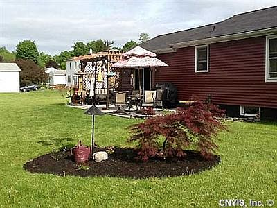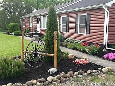 Expect to be impressed ! This 3 bed 2bath ranch sets on almost 1 acre of manicured yard with gardens and a beautiful covered patio! This home is in excellent move in condition. Newer home built in 1988 w/recent improvements including newer: vinyl siding, garage, private covered patio, roof, SS appliances and flooring. Full walk out basement is dry and great for storage or additional finished space. If you are looking for village amenities, public water/ sewer but a country feel then this home is for you! Conveniently located just minutes to the NYS thruway..Buy now and enjoy this summer!