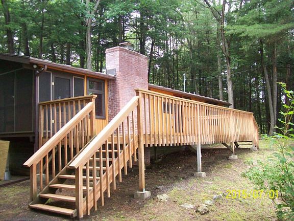 One of the nicest views in Vermont ! Overlooks Lake Bomoseen all the way to the mountains ! Landscaped ! This 2 Bed/ 1 Bath home features a beautiful slate, wood-burning fireplace. Cathedral Ceilings ! Hardwood floors ! 7x16 Enclosed 3 season porch and an 11x30 Deck to enjoy those views ! Wonderful private setting. New asphalt roof. Turn Key !