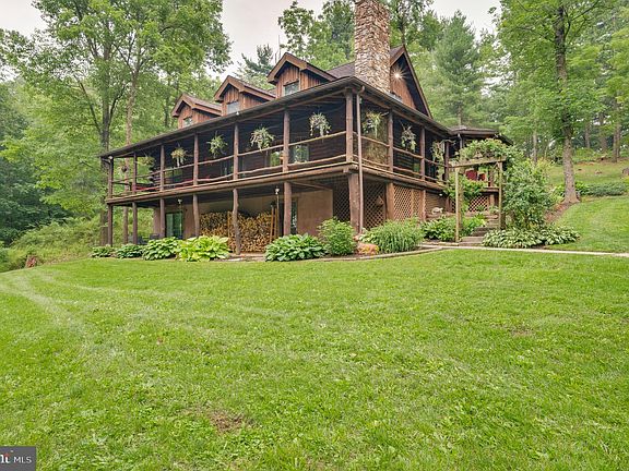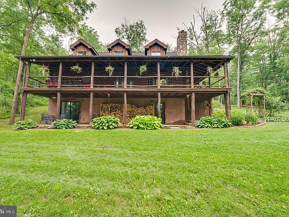 Experience nature living for yourself with this charming property that sets its self apart from any other! Sitting on 10.12 acres, the TRUE log home was constructed using logs that were hand selected with great thought from the Catskills/ Adirondacks of upstate New York. No log cabin kit here! Imagine yourself unwinding on the porch swing and embracing the lively wildlife and scenic views of the Blue Mountain and Mill Creek on the extra wide wrap around porch (just recently sealed!) Perfectly suited for an outdoors enthusiast with a stocked stream and adorable bridge to the left; picture perfect with the mountain in the distance. Moving up the driveway, the extra 4.95 acre lot that is attached on the left, is totally wooded and includes walking trails, OR take your 4 wheeler off roading! Step inside to discover an open concept main floor living room and dining room offering a grand stone fireplace, large windows for natural light, and exposed log beam ceiling. Fresh paint and flooring create a refreshed atmosphere, giving the home a vibrant and welcoming ambience. Off the dining area, you’ll find a welcoming kitchen with breakfast bar, and neutral tones of the updated cabinets, flooring and backsplash. Watch all the critters from the over the sink window as you cook! Off the kitchen, there’s an exterior door access to the back yard to the right and barn door to left with a convenient laundry / storage room. Moving to the front of the house, you’ll enter a hallway leading to a full bathroom on the left that connects to the master bedroom with a large walk-in style closet, as well as a cedar closet! Walk up the open staircase to the 2nd floor to find 2 very nice sized bedrooms with closets and extra large storage, more great window views and skylights, and a hallway featuring 3 large closets. In the middle of the 2nd floor the full bath includes a stand up shower and jacuzzi tub with large window to take in more nature views! Find a 1 bedroom In-laws suite or apartment in the lower level, just completed in last two years, featuring a full kitchen, open concept dining/ living room with a nice sized bedroom and full bath w walk-in shower. There are two entrances to the apartment; exterior door access from a utilities room which includes supplemental heat woodburning stove, or walk out the the slider window patio door to the lowerlevel patio! Note the 4 cords of split wood neatly stacked for the woodstove on the patio/driveway, included in the sale! Exiting the house and walking towards the left side of the property sits a matching log cabin style 2 car garage with large 2nd level, electric & water, a gardening/lawnmower shed, and a chicken coop with electric and fenced in area. Near the top of the property, find a cute pole barn style horse stable that includes 3 animal stalls with water & electric. And finally, at the very top lays a nice flat meadow for riding or other creative opportunities! The picturesque landscaping is what brings it all together to make this property ONE OF A KIND. This house has it all PLUS more, so don’t miss out! Call for a showing today! PLEASE NOTE: TAX ID 84-0000-00-00-0031 ( 4.95 ACRES) IS ALSO INCLUDED. 10.12 ACRES TOTAL Please do not drive up the driveway without an appointment. Showings begin 7/5