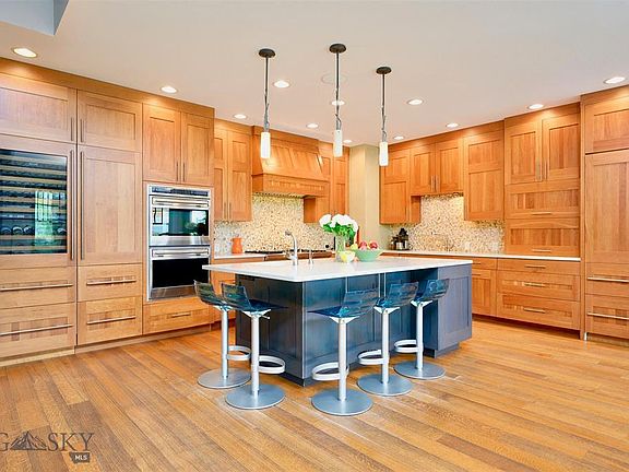 Capturing expansive mountain and valley views, this custom home is nestled in Summer Ridge, just moments from Bozeman in the Bridger foothills. Integrating a Modern-West aesthetic, vast windows drench the stunning, open-concept living area and master suite in natural light. A professional-grade kitchen delivers a refined and airy space to entertain, while the recently finished, walk-out lower level provides a 2nd master suite, Scandinavian-inspired bunk room, home gym and 2nd laundry to comfortably host family and friends. A home theatre room is wired and ready for your finishes. Thoughtfully positioned to offer privacy, the home backs to protected views, and the fenced backyard includes a large terraced patio for 3-season outdoor living. Mature landscaping, a beautiful fire pit, separately fenced garden with raised beds, and fruit trees round out the backyard. This home is an oasis in one of the valley's most desirable areas. For a detailed summary, or private showing, call today.