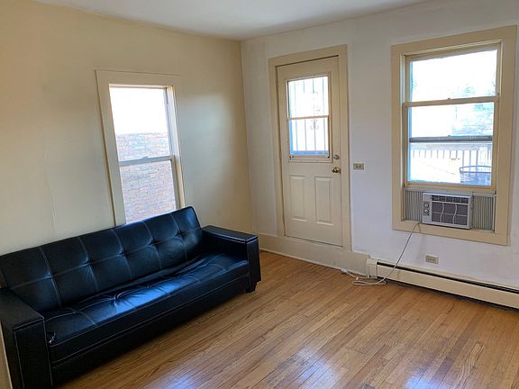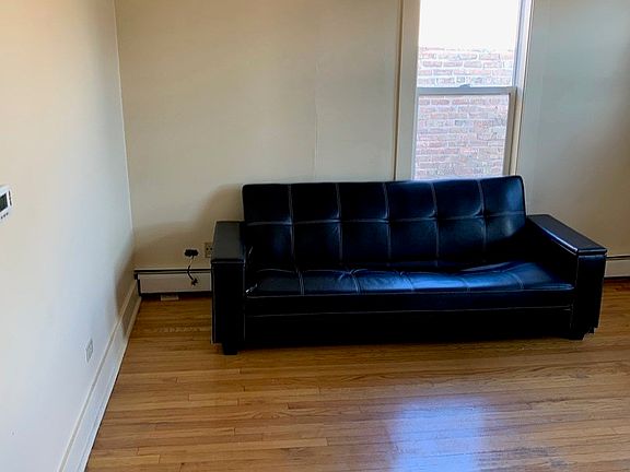 1 bedroom apartment with hardwood floors in LR and BR. Newer kitchen cabinets/counters/appliances, bath has newer vanity, sink, toilet, and beautifully tiled shower. Bedroom has ceiling fan. There is a washer and dryer in unit. Tall ceilings with one entrance, but has separate exit to roof deck to grill/relax. Has baseboard heat. Has window AC. Can park in front on street or in back in gravel parking lot. Tenant pays gas, and electric. Pets on a case by case situation with a separate deposit. Prospective tenant must do My Smart Move on-line application that they pay for. Available immediately.