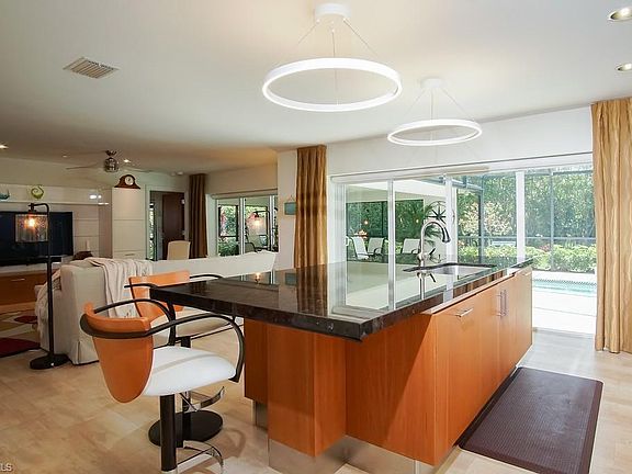 Captivating designer remodel from top to bottom! This art-inspired modern transformation has made the home elegant yet functional, simple yet chic, timeless and versatile. Inviting floorplan that is completely open to the rear lanai and pool area with sliding glass doors that pocket for that indoor/outdoor experience. The openness to the outside allows for ample natural light at any time of the day. Contemporary Irpinia kitchen cabinetry with top-of-the-line Miele appliances and Sub-Zero refrigerator and Sub-Zero built-in wine chiller. Exquisite kitchen open to great room is an entertainer's delight! Richly crafted custom cabinetry in every room that appeal to all the senses! No detail overlooked, nothing left untouched, including the newly installed impact resistant windows and sliding glass doors with custom Roman shades in the expansive master bedroom and solar shades in the guest bedrooms and sliding glass doors! One would have to see it to truly appreciate the enormous passion and thought that has been put into every aspect of this beautiful home! Optional golf course membership at the Country Club of Naples.