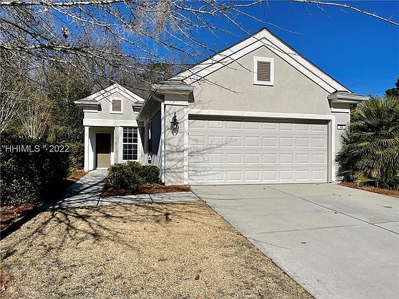 SUN CITY, Great Heather model w/ Sun Room, Located end of Cul-de-Sac on Private Woded Lot, Foyer entry, Kitchen w/tile, Gas stove, White cabinets, Corian counters, Breakfast area, Spacious Great room w/formal dining area, Large Sun Room addition w/Hickory wood floor & priivate wooded views, Patio, Mstr. Bedroom w/bay, walkin closet, Mstr bath w/double raised vanity & separate shower, Guest Bedr plus full bath w/tub/shower, Den/office/3rd bedr w/closet, inside laundry, windows with 3M film, 4ft added to garage, 2015/2016 HVAC, Lush landscape w/added Palm trees, Beaufort County taxes,currently not homestead,