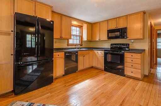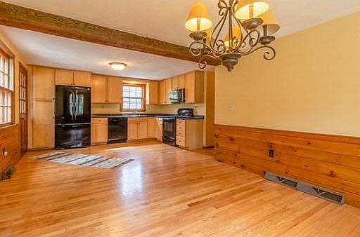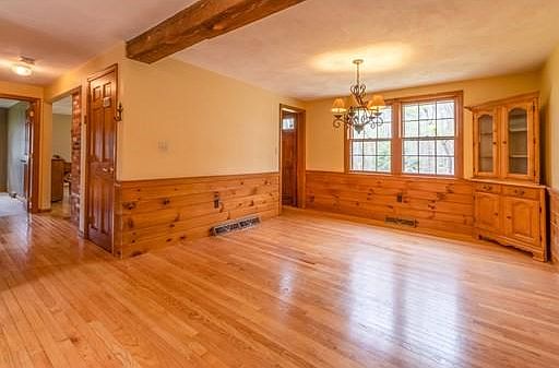 Welcome to this Single Family Colonial on a nice wooded lot with an oversize Two Car Garage with an unfinished room above. The Kitchen has access to a large Enclosed Screened porch. The Kitchen also opens up to the dining room for a flexible space. The Kitchen, Dining room and Living room (with a Fireplace) all have Hardwood flooring. The first floor also has a half bath with Laundry Hookups and a Family room that overlooks the backyard. The second floor has a full bath and 3 bedrooms. The Basement has a finished room and plenty of storage.