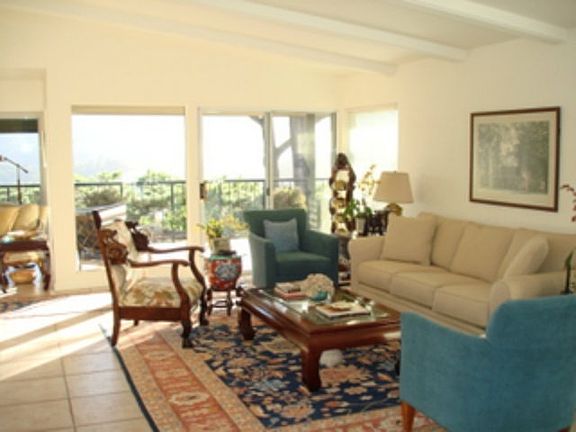 Unit #48 is the only free-standing, expanded B unit and the only unit with a private, walled entry garden, plus a separate walled patio and large deck. views are, Carmel Valley, Quail Lodge and the Ocean. Vaulted beamed ceilings in living room and master bedroom. Unusually private free standing unit behind high hedges and private "gardens" archway and gate to patio, lovely manicured landscaping.