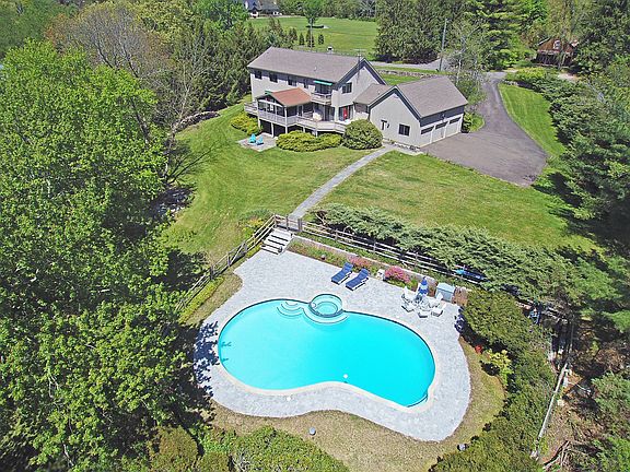 Stunning modern country estate set on the most scenic 2.3 acres on bucolic Dorethy Road bordered by Redding Land Trust conservation property. This quintessential retreat like home offers the best of all worlds, most convenient West Redding location, yet idyllic privacy with panoramic pond views, heated gunite pool, multiple outdoor living areas including the inviting screened porch with marine varnished wood floor, expansive decks, stone patio and new pool terrace. Impressive from first glimpse w/native stone walls, circular drive, 3 car garage, sweeping lawn and mature landscaping. Total 5,422 square fee with 4-6 bedrooms, 4/1 baths and 3 finished levels. Light, bright and open, the heart of this home is the expansive great room featuring floor to ceiling double side stone fireplace, vaulted ceiling, hardwood floors, plus wet bar with bar seating, adjacent the chef's kitchen with cherry cabinetry, center island, granite counters, stainless steel appliances, and sunny breakfast area with walls of windows/sliders to the rear deck. The main level also features the totally open living room and dining room for ease of entertaining; private office/au-pair suite with adjacent full bath and 2nd floor library loft; plus spacious mudroom, laundry and 3 car garage. The 2nd floor features the spacious master bedroom suite with private bath, walk in closet and outdoor balcony plus 3 additional bedrooms and updated hall bath. Don't miss the huge walk-out lower level family/game room with 2nd fireplace, copper bar area, plus separate cedar paneled office, sauna, den/optional bedroom and 4th full bath. The best of country living, just 60 miles to NYC!