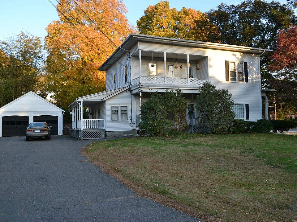 Stately,updated,vintage 4 bedroom colonial with 4 room rental apartment or inlaw.Two car detached garage and storage shed.Beautifully landscaped yard with perenial flower gardens,flowering shrubs and trees.New remodeled kitchen with vaulted ceiling,tiled foor,slate counters,ceiling fan and new appliances.Formal dining room with bay window window bench,builtin hutch and oak floor.First floor lavatory.New oak/pine front staircase to 2nd floor.Second floor includes 4 bedrooms,2 full newly remodeled tiled baths.Large finished basement family room with new tiled floor,ornanental fireplace.Living room with beautifull fireplace.Updated electrical.New roof on house and garage.Additional first floor 4 room apartment with separate entrances,tiled kitchen,bedroom,living room,dinette area,full bath.Zoning is "C" for residential,commercial or multi family.Also perfect for proffessional business office such as law firm,real estate or medical.