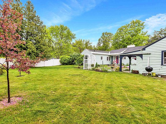 Presenting a remarkable opportunity to live in the Edgewood Common neighborhood in Keene. This ranch-style home offers 3 bedrooms and 2 full baths with a versatile floor plan, situated on a generous corner lot. You will appreciate many thoughtful updates including new kitchen tile, flooring, granite countertops, gas range, a large island with butcher block, a farmhouse sink, and a window for viewing the landscaped backyard. Dine in the spacious sunroom with floor to ceiling windows. Your indoor plants will thrive. There's also a formal living room with a gas fireplace and a bay window. The paneled den is perfect for watching movies, game nights, or selecting a favorite novel from the built-in bookshelves. The primary bedroom ensuite features a walk-in closet, a full bathroom, and slider to the private yard. Two more bedrooms and a renovated hallway bathroom complete the main level. The partially finished basement adds additional living space. A detached two-car garage has extra storage, covered sitting and cooking areas, a patio, and a large fenced yard, perfect for people and pets, with vibrant perennials and shrubs. The owner's recent upgrades include fresh interior and exterior paint, and a completely new paved driveway. This home is a rare find. Enjoy easy access to the entire Monadnock Region, where you can explore local shopping, cafes, restaurants, bookstores, colleges, performing arts, farmer's market & plenty of outdoor activities in beautiful Keene, New Hampshire.
