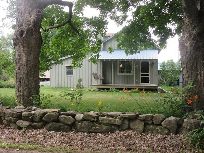 Behind the stone wall and large trees in front yard is the simple life in a farmhouse that has grown and developed. The swing on the front porch reminds us of those simpler days. Some wood floors. Skylights. All the work has been done by the owners over a period of about 40 years. Master Bdrm (with half bath) on main floor has glass doors to deck. 2nd bdrm on main floor might be used as office or playroom. One of the 2 bdrms on 2nd fl has built in place for mattresses and the other has a chalkboard! Neat! Woodstove in Master Bdrm and in living room. A sunroom with solar mass is on back of house. There is a windmill--one of the FIRST in the area. It has provided electricity for MANY years. Beyond the 2 car garage with storage area on back is a large barn with real workshop. Original horse barn is to the right and this owner BUILT the rest of the barn which has hay loft and a separate area as a very nice workshop with its own woodstove. There is good pasture on this property. There have been no chemicals on land for 40 years. There have been horses, chickens, pigs, beef cattle. None are there now but you can bring yours. There is a huge fenced in garden area. This family has enjoyed living the simple, self sustaining life for years. We think you might enjoy it as well! Note: Barn pictures will be on soon.