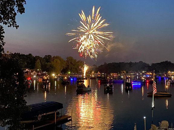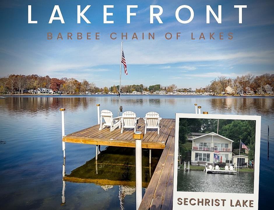 50' of Lakefront at the popular Barbee Chain of Lakes! Sechrist lake hosts this spectacular lakefront home with panoramic lake views, sandy bottom swimming area and is only a quick boat ride to Sawmill, Little Barbee, Irish, Big Barbee Lake and Kuhn! Big Barbee lake is an all sport lake where you can take pleasure in jet skiing, tubing, as well as fishing on this and the rest of the chain of lakes. Indoors you can relax and enjoy your lake home with over 2,000 finished sq. ft. of living space. An open concept at the main living area with a spacious living room at waterside with floor to ceiling glass doors making the lake, the focal point. Open to the dining area and kitchen around the corner. Down the hall, conveniently located is a full bath, bedroom and laundry room. Upstairs, full bath, loft space and additional bedrooms. With access to the lakeside balcony! Come tour this lake home today and make it your weekend getaway or year 'round home. With 'front row seats' to the beautiful 4th of July Fireworks show!