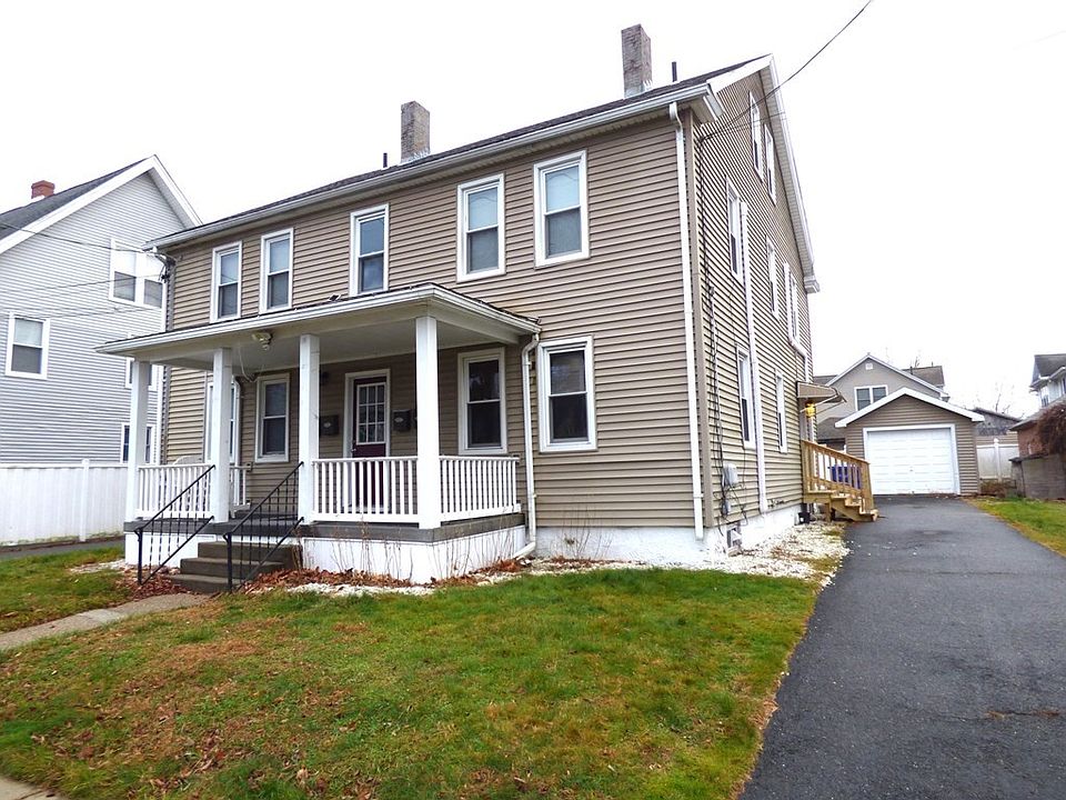 Great Invesment opportunity with this fully rented 4 single bedroom unit property. All units have very large kitchens (range and refrigerator Seller owned), bathroom, bedroom, and living room. Each unit has an efficient mini split system with heating and cooling, and gas hot water heaters. Basement is separated with secure storage for each tenant and washer/dryer hookups per unit. Attic has 4 rooms available for storage. Property has many updates including circuit breaker panels, mini split systems, roof, siding, vinyl windows, and exterior stairs. Large one car garage is used as owner's storage, owner currently performing snow removal and lawn care. Owner pays water and sewer, tenants have individual electric and gas meters. Two units have leases expiring in December and two units are month to month. All tenants to remain with sale of the property. First showings by appointment Thursday,December 7 and Saturday December 9.