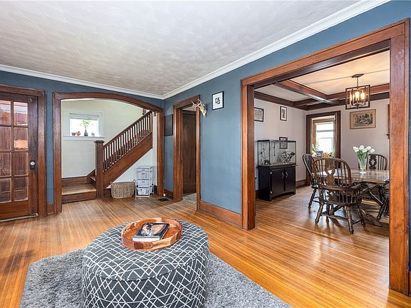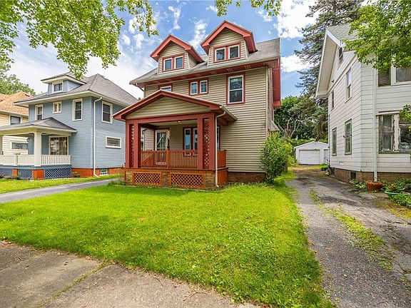 Exquisite craftsmanship & architectural details are evident throughout this home located in a prime section of the 19th ward! Inviting front sitting porch w/French door entry & vestibule w/classic tile welcome you. Inside you'll find more to love including all gumwood trim, tall moldings, wood doors and built-ins, & a gorgeous arched opening to the staircase. The dining room features an elegant coffered ceiling & window seat. Kitchen w/wood cabinets & more classic built-ins, plus a butler's pantry w/wood & glass cabinetry & tons of storage! Upstairs we have 3 nice bdrms, all w/hardwood floors & ceiling fans. The rear bdrm has a door to the enclosed sleeping porch. There's also a full attic ready for your imaginative finishes! There is a convenient porch off the kitchen that leads to the rear yard & sitting area w/a privacy fence installed in 2017. All new replacement windows in 2017, attic windows 2022, new central air & furnace in 2021, & new driveway in 2017. Quiet, neighborhood street, just minutes to Strong / UR, RIT, shopping, dining, Genesee Valley Park & more make this the perfect place to call home! Delayed negotiations til Tues, 7/18 @2pm.