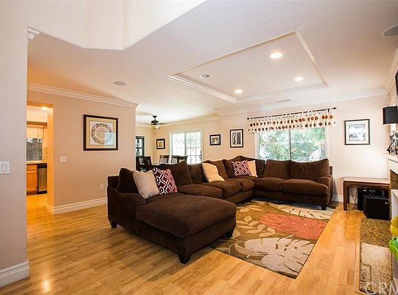 Looks Like a model home! Everything you could wish for & more for your family. Roll-up 2-car garage has washer/dryer, sink, and work bench. Wonderful curb appeal; you enter this immaculate 1650 sq ft move-in ready 2-story 3 bedroom home w/ a large permitted office/den w/ built-in efficient workstation. Upgraded everywhere you look! From the downstairs powder room to the kitchen w/ granite counter tops, stainless steel appliances & plenty of light cabinets & large dining area off kitchen looking out to the lovely professionally hardscaped & landscaped backyard. Downstairs boasts BRAND NEW DARK laminate flooring w/ crown baseboards & crown molding. (see new pictures #31,32 & 33) The livingroom has gas fireplace & beautiful custom mantel w/ built-in entertainment center. It has designer paint thru-out property. Highgrade neutral carpeting takes you upstairs to the upper floor; where you find 2 full upgraded baths & plenty of closets for storage. All blue ribbon schools & close to shopping & toll-road. WOW!! Start packing!!