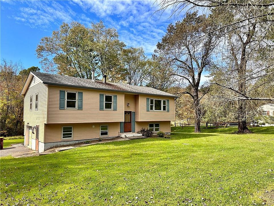 LOCATION, LOCATION PLUS ACREAGE!!! Don't miss this affordable Warwick opportunity on TWO GORGEOUS PRIVATE ACRES! This solid and spacious raised ranch is ready for your customization and updates!! Newly tiled full hall bath and full ensuite primary bath! HARDWOOD FLOORS THROUGHOUT THE MAIN FLOOR; Large Living Room and Dining Room with sliders out to a LARGE DECK with extendable awning! 3-bedrooms and two full baths on main level; Walk-Out lower level with large den; guest bedroom, office or playroom plus a large storage area. 1-car garage with secondary storage/workshop area with laundry area including a washer and dryer. Whole house water conditioner owned and included! Lovely 2-ACRE PROPERTY with a stream that extends back into a private wooded area. A wonderful Warwick home waiting for its new owners! Minutes to the heart of Warwick Village, shopping, wineries, skiing and all that Warwick offers!! Priced to SELL QUICKLY!!! Additional Information: Amenities:Stall Shower,HeatingFuel:Oil Above Ground,ParkingFeatures:1 Car Attached,