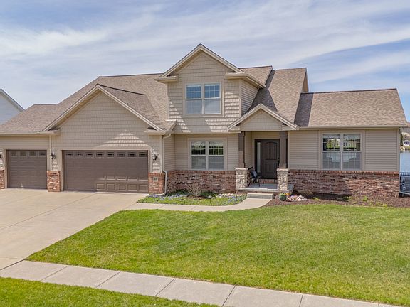 WATERFRONT HOME! Meticulously maintained custom O'Neal Builders "HOME ON THE LAKE" in Heartland Hills Subdivision! There is over 2875 finished SF in this 4 bedroom, 3.5 bath home! This home features a custom kitchen with granite countertops, an island, and a walk-in pantry! The family room has built-in bookshelves, a gas fireplace, and a cathedral ceiling! The large master suite has a great view overlooking the lake! The lower level has a family room, office/workout area with a dry bar, a bedroom, and a bath with a custom walk-in shower! There is a Murphy Door leading into the storage area! Enjoy the evenings on the covered porch or on the paver patio by the firepit with the lake view! The fenced yard has been professionally landscaped. Beautiful drop zone and storage off the 3-car garage!! 1st floor laundry with cabinets and a clothes folding station! Have some fun fishing or boating (trolling motors are allowed) on the lake!