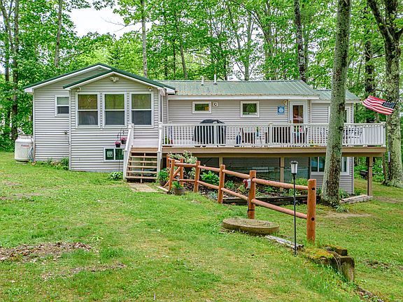 Enjoy your Lake Life year-round living. Dreams do Come True! Expansive 200 Feet of Waterfront on a 1.43 ac lot and a year-round Ranch home with a seasonal Bunkhouse for guests. A relaxing day on the Lake with the Loons, Eagles, paddle board, kayak, canoe, or fish. This updated home is fully furnished. This home offers one-floor living with 3 bedrooms and a bath with laundry.