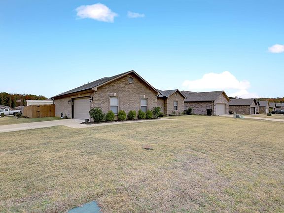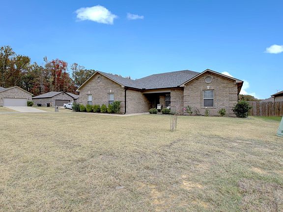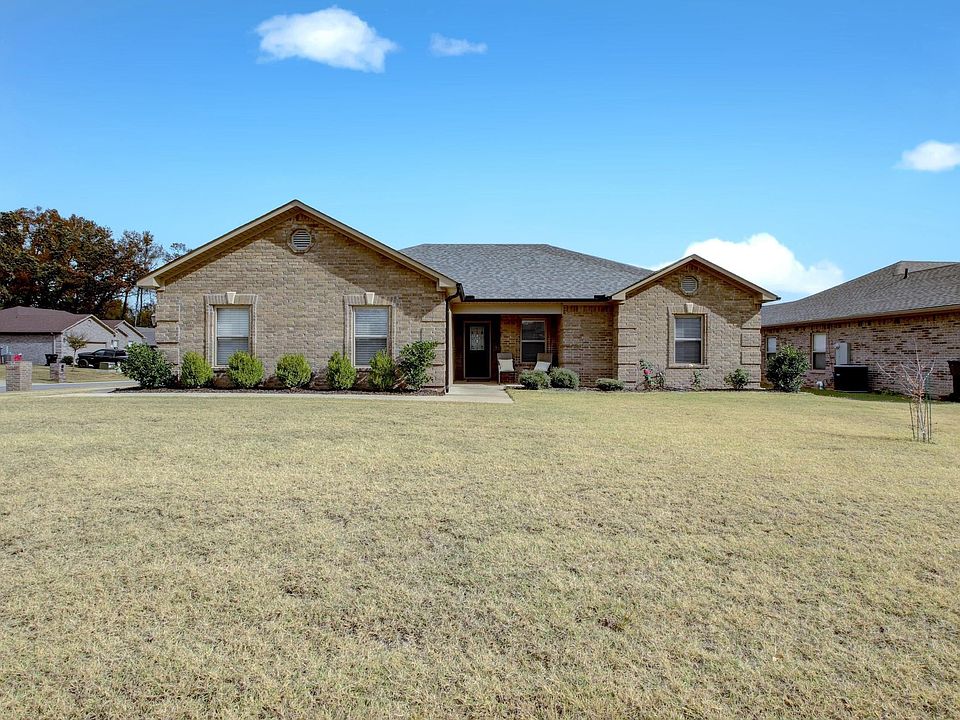 Gorgeous Corner Lot Home in the popular Huntington Place Addition! This all brick 3 Bedroom, 2 bath home offers an open floor plan w/custom features throughout - crown molding, tumbled stone backsplash, kitchen pantry w/ plenty of storage, granite counter tops, SS appliances, under cabinet lighting, ceramic floors in all wet areas and GE kitchen appliances. Master has double sink vanity, large walk in closet w/built in shelving, walk-in shower and tub. Large family room offers tray ceilings and gas log fire place. Back yard is completely fenced in with covered porch! Home includes ceiling fans in all rooms. New roof in 2022! Come see!