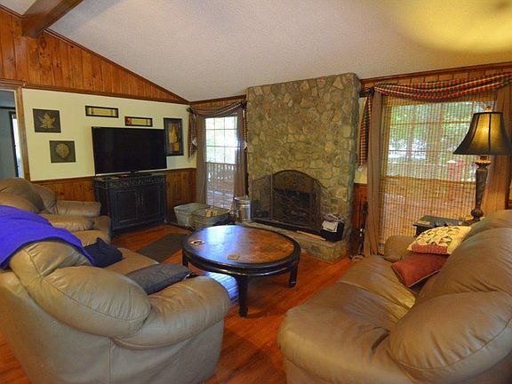 Water's Edge is a classic lakefront home set in a cove with lovely views of Lake Santeetlah and the Snowbird Mountains. Every detail of this great 2,140 square foot property has been planned to create a welcoming and relaxing experience. The three bedroom, two bath home has exquisite wood and stone finishes with quality craftsmanship throughout. The light filled living room provides a large gathering area around the native stone wood burning fireplace. The expansive kitchen spills out to the dining room with sliding glass doors opening to an inviting lake-view deck. There is a fully finished walkout lower level with another living area featuring a gas fireplace.
