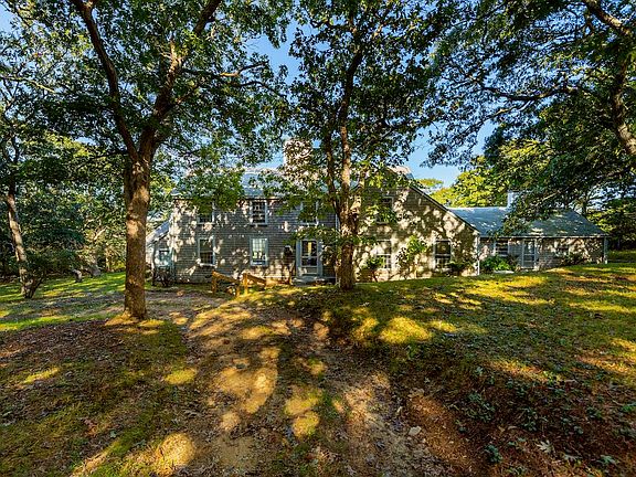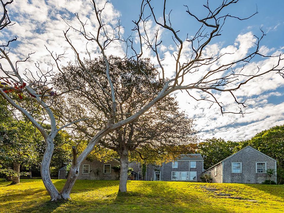Seven Gates Farm waterfront and rare opportunities are synonyms. This coveted community offers nearly 2,000 acres of the Island's most beautiful, dramatic conservation land including two miles of walkable beach, two docks, two tennis courts and extensive trails. The Revere waterfront home, an originally circa 1932 build and owned by The Homans’, was purposely aimed for sentimental reasons toward Tarpaulin Cove. Some of the lumber used for the build was reportedly sailed to the site from Maine, possibly because Edith Homans’ family summered in N.E. Harbor, Maine. Her brother-in-law, Roger Griswold was the architect who designed the eight bedroom, four bathroom 4,800 square foot home nestled into the gentle slope of this 6.1 acre parcel. The u-shaped dwelling with inner courtyard provides inviting picturesque views of a lower pond and Vineyard Sound. The Revere matriarch purchased the home in 1955 and then in 1956 winterized, modernized the interior and had a garage built. This long standing home with history is eagerly awaiting a new owner to begin this home's next chapter.