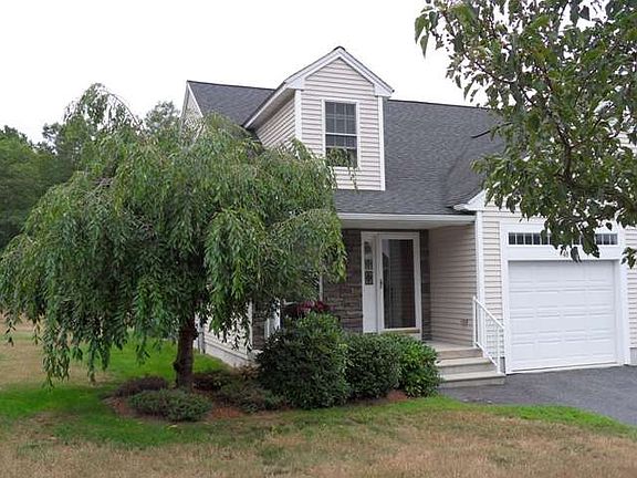 Wonderfully maintained and designed 2 bedroom Townhouse with a one car attached garage is located in the Hamlet one of Blackstone's most desirable 55+ neighborhoods. Situated on a cul-de-sac section of the Hamlet this Townhome backs up to the woods. Featuring a large eat-in kitchen with lots of custom cabinets, plenty of counter space, all the appliances, and tile flooring, a large living room with cathedral ceilings, gas log fireplace, and sliders out to the deck. The first floor is also set up for a first floor Master Bedroom and a full bath. The second floor has an office/craft room, a full bath, and a large bedroom with a walk-in closet area which is currently being used as the master bedroom. With easy access to amenities and walking trails this home is just waiting for your personal touches.