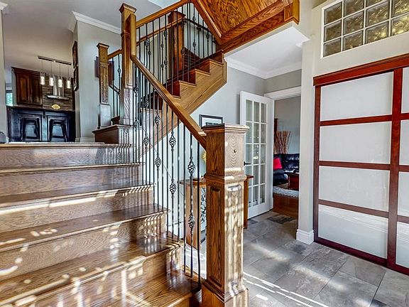 Gorgeous curb appealHardwood flooringCustom artisan hardwood staircaseModern kitchenEat-in breakfast nookLush fully mature treesSpacious back deck