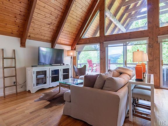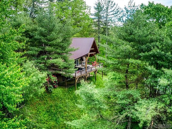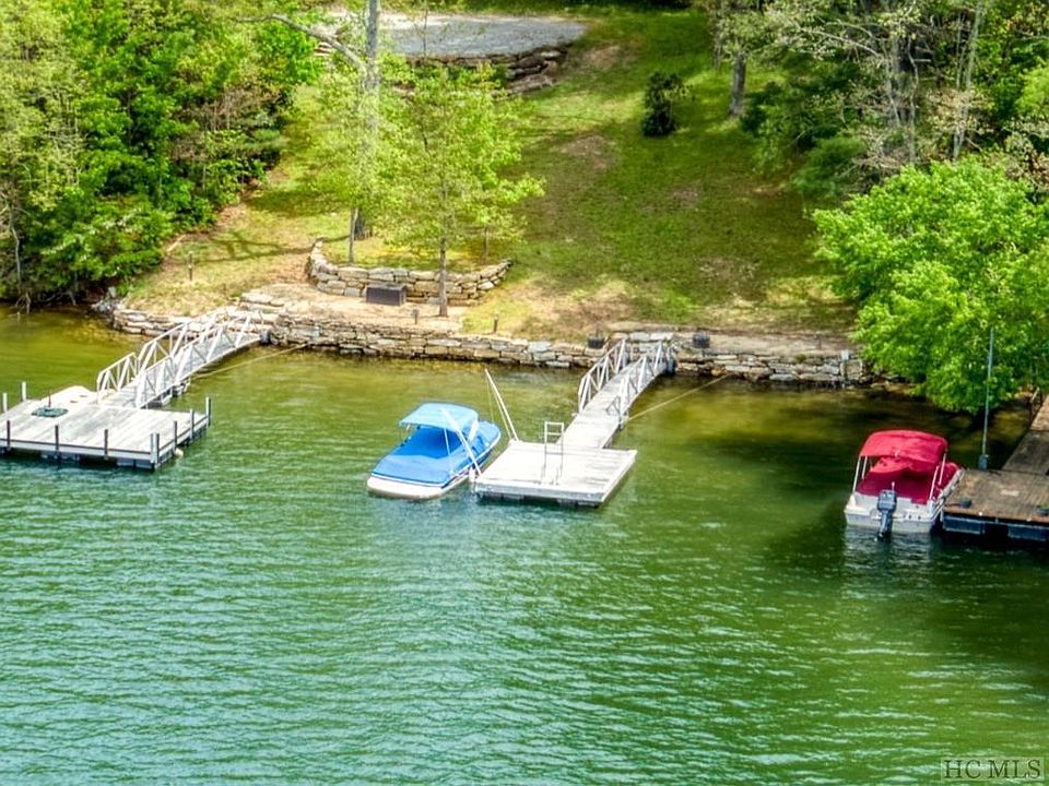 Mountain views, Lake Glenville views, and a private dock. This chalet has all the upgrades and modern conveniences of a new home. Tucked in the hillside, this home has fantastic lake and mountain views. The lake lot is spacious, easy walking access and an excellent private dock. If that is not enough, the detached garage will allow you to store your boat for the times you are not here or the winter...or park your cars with room to spare and front/back garage doors. Enjoy evening lakeside sunsets from the covered porch or the stone sitting area by the lake. This property has what you are looking for.
