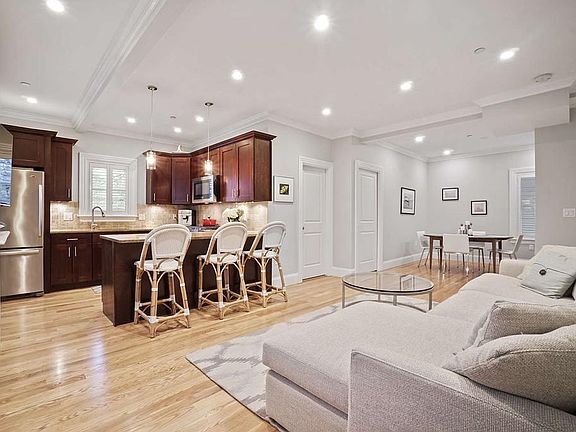 Thoughtfully renovated 3 bed, 2 full bath duplex on one of South Boston's most sought after streets. The building was renovated in 2008 and the owners have made additional improvements during their ownership. The open concept first floor offers three exposures allowing for an abundance of natural light. The kitchen features custom cabinetry, newer stainless appliances, stone countertops + a large breakfast bar overlooking your living and dining areas. On this level, you'll also find the first of three bedrooms and a new full bath with tile surround and jacuzzi tub. Downstairs are two additional bedrooms including a very spacious master bedroom w/a wall of custom cabinetry. The second full bathroom was updated w/new floor tile, a beautiful marble topped double vanity and a walk-in shower with glass surround. This home also comes with one assigned parking space directly behind the building, central air, a gas FP and in-unit laundry! Flexile move in!!