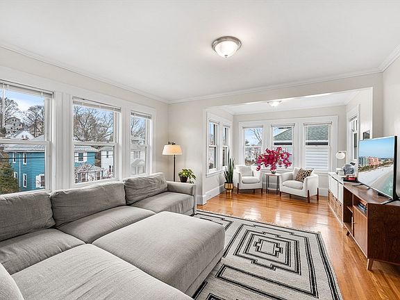 This wonderful duplex condo is on the 2nd and 3rd floors and is FLOODED with natural light! Offering 7 rooms, 3 bedrooms and 2 full baths, you will not want for space! The formal living room is enveloped by windows, including a reading nook towards one end and is open to the formal dining room offering a lovely built-in hutch. Two bedrooms, a full bath, kitchen with vented stove and laundry in the pantry plus a separate office and rear deck complete the 2nd floor. The 3rd floor is the primary suite including a walk-in-closet, separate closet, storage in the eaves and an ensuite 3/4 bath. Delight common rear yard is utilized primarily by this owner including raised gardening beds. Condo comes with lots of basement storage, the left garage bay and parking in front of the left bay. This condo was lead mitigated in 2022, although the exterior was not. ~1m to Roslindale Village. Bus to Forest Hills T just 5 mins away.