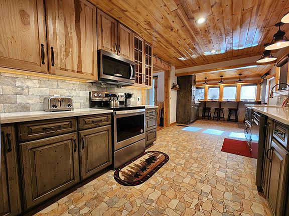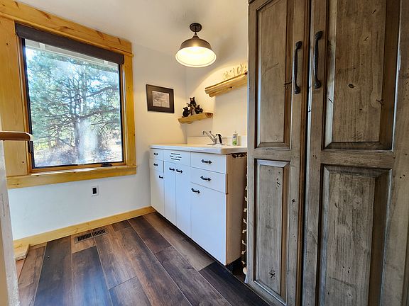 Expect the unexpected in this unassuming home in lovely Glen Haven Colorado. Located on a quiet piece of heaven directly by the trickling stream flowing by the large deck. Sit on the bench and feel nature surround you. Featuring 3 bedrooms and a little nook for reading time or hiding out, there is plenty of space for you. No detail has been overlooked inside this gorgeous home. The kitchen is updated with stainless steel appliances, custom cabinetry and ceilings, special tile throughout the home and more! Fully furnished and stocked for immediate enjoyment. Large stone fireplace that brings the warmth to your bones after a long day in the snow. Go to the epoxy finished workshop/garage to tinker with your projects or have a separate recreation area. Coming in after a dirty day? No problem, the original farmhouse sink is just a landing away so you can freshen up before going into the heart of the home. The primary bathroom is spectacular with a large soaking tub, stone and tile shower, powder room and posh finishes, the upper level bathroom is just as inviting and special with similar stone and tile and cute as a button! Extra RV pad with electricity for storage of your rig, or allowing family to come visit. Available for immediate move in! No pets please 1 year lease No pets please Fully furnished Water is on a well Septic will be tenants to maintain (pump upon departure, and intermittent pumping if long residency) Yard care will be tenant responsibility Trash and Utilities/Propane are tenant responsibility Main road is plowed during snow, minimum snowfall required before plowing RV space has electric. Can store RV or have family visit, no long term occupancy in the RV allowed Credit Score and references will be required.