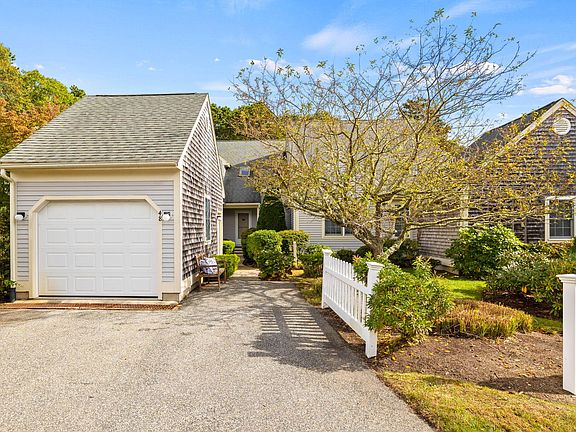 Gorgeously green, and private, private, private! Do you love the charm and convenience of Windchime, but have been waiting for just the right unit? Well, this could be it! This is one of only two homes in Windchime with a private courtyard between the detached garage and the house, utterly enchanting! Inside, the kitchen and living/dining areas are oriented toward the back, with its beautiful deck and densely wooded views. You'd never know you were only a half mile to South Cape Village and just a bit more to Mashpee Commons! In addition, there is a partially finished lower level, owner estimates (but does not represent) additional 600 square feet. All beautiful!! Come visit.