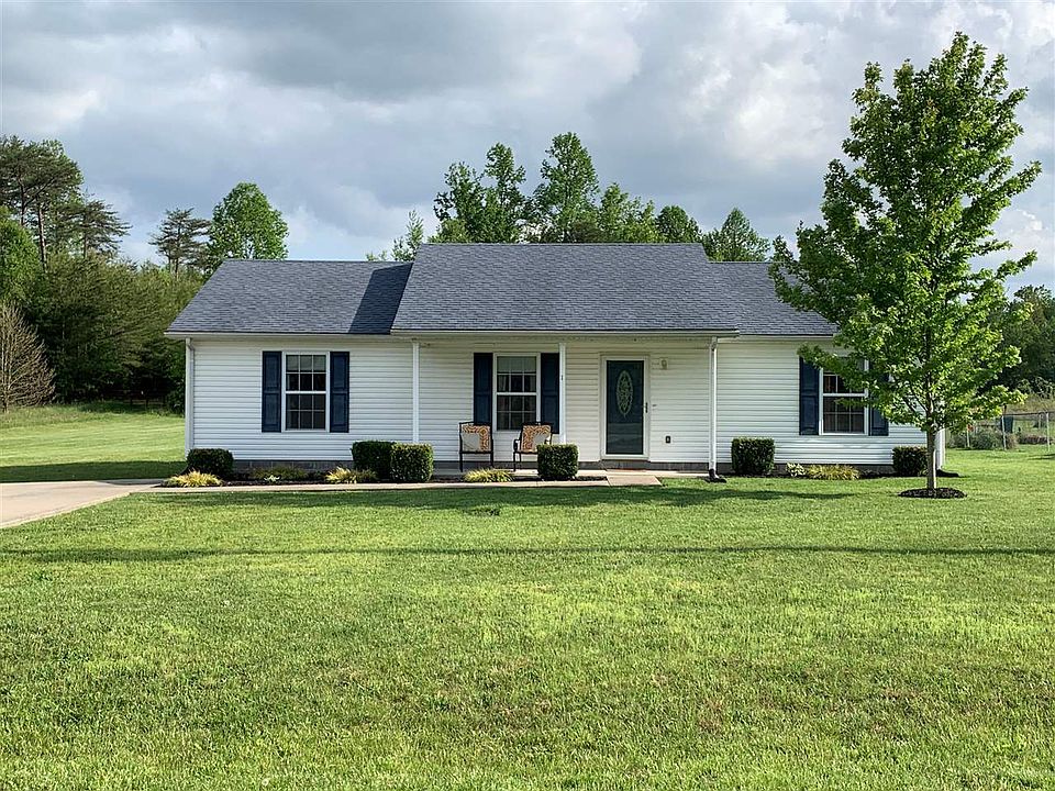 This is an exceptionally maintained, smoke free, one owner home that you must see. This property features a split floor plan with a vaulted ceiling in the living room. Owners have installed nice quality wood laminate flooring with quiet walk padding, 2" faux plantation blinds, storm doors, and a security system from Comcast. The fully equipped kitchen provides nice cabinetry, plenty of counter space, breakfast bar, pantry and upgraded fixtures. The home also features a spacious master with a walk-in closet and large closets in the additional bedrooms. This home's exterior not only features beautiful landscaping and a covered front porch, but the patio on the back of the home perfect for entertaining and double concrete driveway. This property is located minutes from town, a major interstate and Fort Knox.