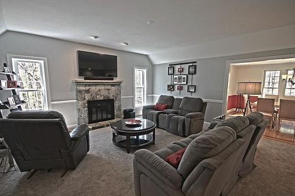 Gorgeous 4 bedroom Cape, garrisoned rear in well set back on private 3+ acre lot w/ fabulous inground pool. Come up the brand new driveway and enjoy approaching this lovely home with farmers porch, handsome twin dormers & two bay attached garage. Lovely hardwood foyer opens to spacious living room w/ new carpet, trey ceiling & cozy stone hearth fireplace. First floor study w/ hardwood floor & chair rail. Large eat in kitchen w/ new floor, granite counters, cherry stain cabinets, double oven, new refrigerator & new dishwasher, flat top electric range & hanging pot rack. Formal dining room w/ hardwood floor, chair rail and crown molding. Nice bonus 4th bedroom over garage. First floor laundry, half bath & cedar lined sauna...nice! Master bedroom w/walk in closet, full bath w/ jetted tub and shower. 2 other bedrooms and full bath on second floor. Huge finished basement w/ pool table & bar(both neg). Rinnai wall hot water heater. Inground pool and the list goes on. Great private location.