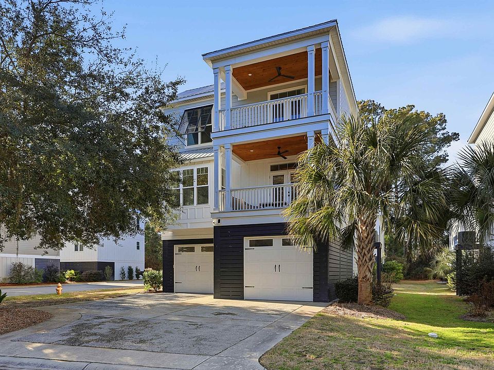 This versatile raised beach house is located in the desirable Marshland Park community, a 36 home creek front neighborhood nestled in a grove of oak trees. Used sparingly as a 2nd home. On the ground floor is a two car garage with space for a golf cart, kayaks etc. There is also a large workshop or storage area. Stairs from garage take you to a quaint family room with shiplap that flows into a chef's kitchen and dining area with lots of natural light. Step out on the porch and soak up the ocean breezes, surf sounds and view the many species of coastal birds. A bedroom with a full bath and a laundry room complete the first floor. Upstairs is the primary suite with large bath and it's own private porch. Two additional bedrooms and bath complete upstairs. Also the builder provided a elevator shaft that encompasses all levels. Come take a look at this well thought out like new home in a serene setting full of coastal charm. One driving mile to beach with public parking.The Ocean Is Calling !