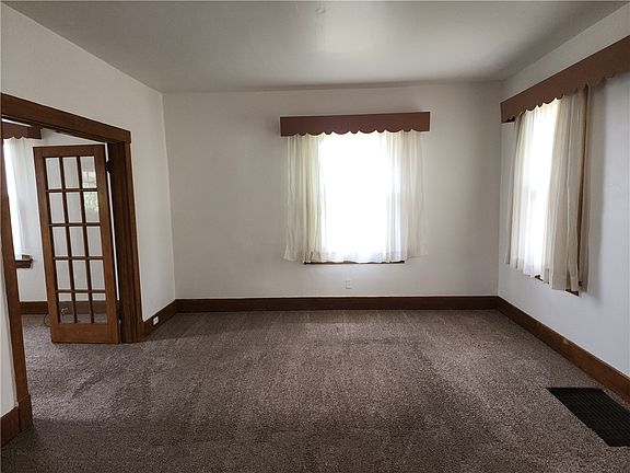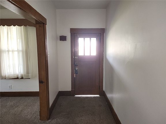 Enjoy one-level living in this 2 bedroom ranch with an additional den. Den has its own access from the porch and from one of the bedrooms inside. Nice sized eat-in kitchen with a dining room beside it. The walk-out basement is high and dry if you want more finished space. Covered front porch with a built-in ramp and off-street parking beside the home. Very pretty and level yard with mature landscaping. The dining room has beautiful built-ins, a giant walk-up attic, and easy access to the highway from your quiet street close to town. Needs some TLC but will be very comfortable to live in and update. This home really offers a lot of space and the high ceilings make it seem extra roomy. It's a gem. AS-IS sale.