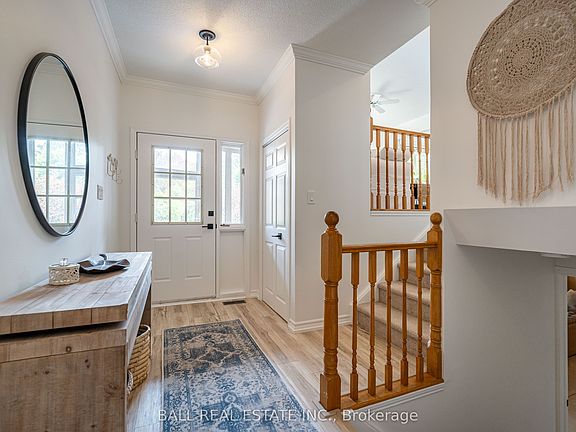 Rare opportunity to live in town and back onto Crown Land! This tastefully updated raised bungalow is just a 10 minute walk to downtown Bobcaygeon! The main level features a bright, open layout with 2 bedrooms including a spacious primary suite complete with custom storage, soft-close drawers and a luxurious ensuite with a whirlpool soaking tub for ultimate relaxation. Step out to the private balcony to enjoy a morning coffee or just to relax at sunset. The second bedroom includes custom closet organizers and a view of the backyard. An updated bathroom features new flooring, a modern vanity, and a walk-in shower. Convenient main floor laundry with new front-load washer/dryer, built-in cabinetry, and a deep utility sink. Private 3 season sunroom with walk out to deck and patio for barbequing, outdoor dinners or stargazing. The finished lower level offers excellent flexibility with 2 additional bedrooms, a 3-piece bathroom, and a large recreational room, ideal for guests, extended family, or a home office setup. There is also a Generac Generator that will automatically turn on in the event of a power outage! Recent upgrades include vinyl plank flooring, carpet, crown moulding, light fixtures and paint throughout. Walk to schools, enjoy small town charm with Lock 32 on the Trent Severn Waterway, local shops and restaurants yet return to your personal woodland backdrop, this is Bobcaygeon living at its finest!