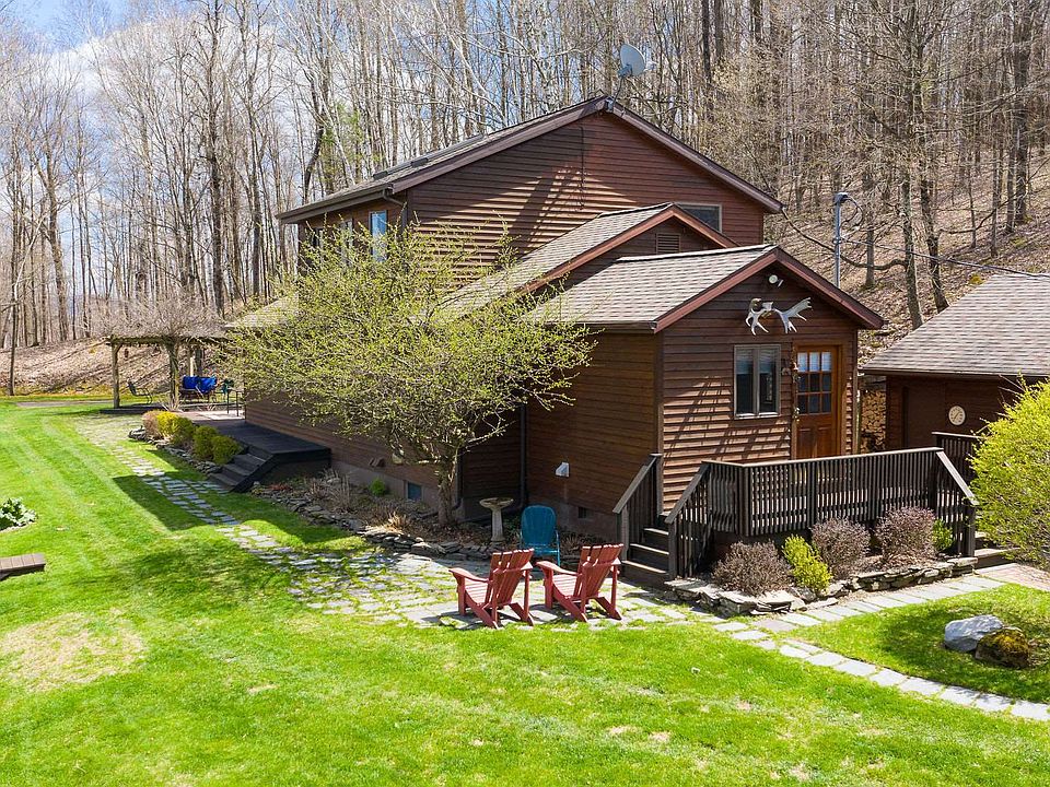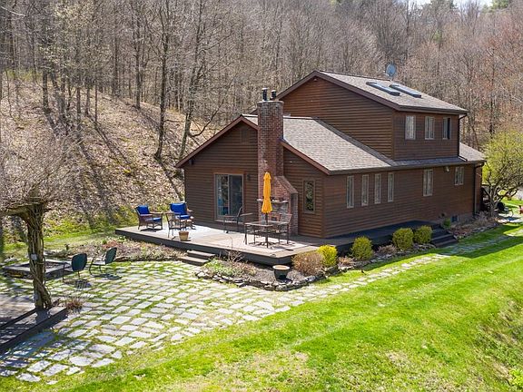 Serenity awaits in this relaxing custom built home located atop Colfax Mountain with breathtaking views. The kitchen inspires cooks with rich cherry cabinets, ss appliances, granite countertops, and large island. A spacious living room with natural light is the perfect place to unwind. Get cozy in front of the fieldstone hearth & wood stove or step outside to a sunny deck and fairy tale slate patio w/ a pergola, stone fire pit, and built in gas grill. The 1st floor bedroom ensures this is the perfect retreat or forever home! A spiral staircase leads you to 2 large bedrooms, full bathroom, & sweeping views of Green Mountain and Hedges Lake. Desirable features include hw floors, inlaid tile, 1st flr laundry, & oversized 2 car garage. A short drive to VT, Saratoga, and Adirondacks!