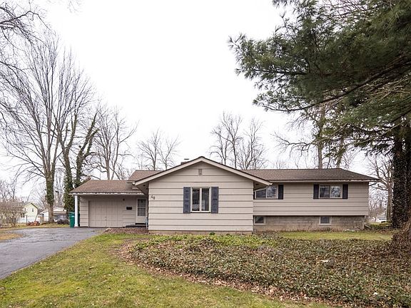 The foyer welcomes you into this breathtaking, unique, mid-century-like, contemporary split-level home in the heart of Greece that awaits a new owner. The over 2,600 sqft allows for 4 HUGE bedrooms, 1.5 Baths on nearly a 1/2 acre park-like lot. The chef will love entertaining in the open, applianced kitchen/dining that overlooks the spacious family room w/ vaulted ceiling and floor-to-ceiling whitewashed brick wood-burning fireplace. You'll love the hardwood floors on the upper level, large full bath w/ built in linen closet, large bedroom closets, the formal living room provides a slider to the patio to enjoy the view of your lush, low-maintenance yard. Updates include A/C, laminate flooring, freshly painted throughout, new chandeliers, professionally finished basement w/wall to wall carpet. Minutes to the expressway, shopping, dining & more. Delayed showings & negotiations: Showing start 3/30/23 @ noon & offers due 4/3/23 @ noon w/ a 24 hour life of offer.
