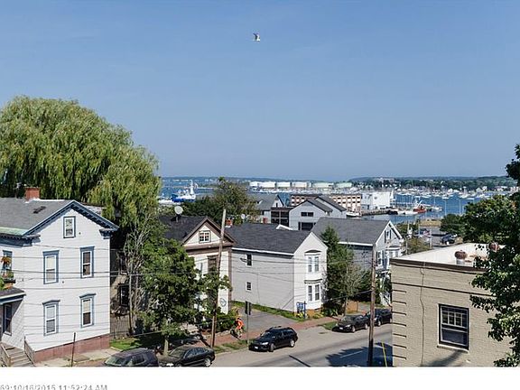 Dramatic views of Portland Harbor from private, exclusive rooftop deck! This Condo on 2nd & 3rd level with traditional interior features hardwood flooring throughout the spacious LR/DR area & large kitchen with plenty of workspace on solid surface countertops. Two adjoining BRs on 2nd floor - ideal for a guest bedroom & home office/workspace w/full bath, soaking tub & separate shower. 3rd floor master suite features laundry closet, walk-in custom-tiled shower with skylight. 1 off-street parking space included.