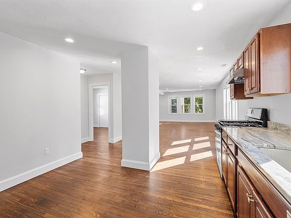 Sunny bright second and third floor unit near Tufts ready for a new owner. This unit has an open floor plan with tons of kitchen cabinetry including a large space for a table or island to be installed. There is a three season porch both on the front and a back porch for summer nights and winter mornings. With two bedrooms on the main level, a full bath, living dining and kitchen all with gleaming hardwood floors. The second floor includes an office space, plus a large primary bedroom and bathroom. This unit has the whole driveway, room for two or three cars along with half of the basement for plenty of storage. Renovated in the past five years, this unit is fantastic. New central a/c in 2022!