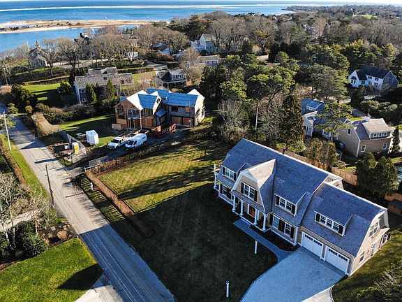 This exceptional, brand new residence nestled in a quiet enclave in North Chatham has breathtaking views of Chatham Harbor and the Atlantic. Thoughtfully designed, every inch of this home is appointed with sophisticated details and fine appointments. The home opens with a cottage-style foyer adjoined by a stunning great room with gleaming wood floors, a grand stone fireplace, coffered ceilings, abundant windows and french doors that seamlessly blend the private back patio and outdoor lawns. The dining area integrates the fully equipped chef's kitchen and exudes convivial living. The main level is complete with a first floor master suite, laundry and half bath. The second level offers three en- suite bedrooms and an inviting home office perch. The master suite has stunning views, a luxurious master bath with soaking tub and shower and mahogany deck overlooking the harbor. This home inspires family gatherings especially with the stunning lower level bunk/entertainment with full bath and exercise room. The property has approval for a 18 x 36 pool. This is set in a beautiful picturesque North Chatham neighborhood within steps to Cow Yard Landing.