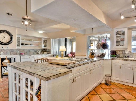 Rural Farm and home property with 2.9 acres and water rights located at the foot of Tome Hill! Hacienda styled home with a courtyard separating the two living spaces. The main home is a spacious 2,100 sq.ft. Large open kitchen with a built-in double oven, upgraded cabinetry and large Saltillo tile. Travel through the courtyard to the additional fully heated living space. The space features brick flooring in the guest room, new travertine floors in the bath and 2 double car garages attached. The kitchen is unfinished and can be arranged to fit your needs. If you are looking for space to bring your toys or horses this back yard can store them. Large 2 story work shop with attached garage and a large barn. Concrete line RGC Irrigation ditch and irrigation well. Home is a must see!