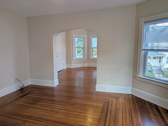 Freshly painted, sunny 2-bedroom apartment on 2nd floor with private porch. This spacious apartment is in great location, close to downtown, train and bus. Minutes to highway and shopping. Gas heat, CENTRAL AIR, private oversized porch. Large rooms, hardwood/pine flooring throughout. Lots of closet space. Two assigned parking spots included. Coin op washer/dryer in basement. Extra storage section in basement as well. Good credit a must, 650 or higher FICO score. NO smoking on premises, no animals. Applicants to supply recent credit report, copies of driver's license, copies of last two paystubs. Please email for information, no calls. One year lease. No smoking, no pets. Renter responsible for gas, electric, cable/internet, snow removal of their vehicles. Owner responsible for water, sewer, trash. Two dedicated parking spaces included.