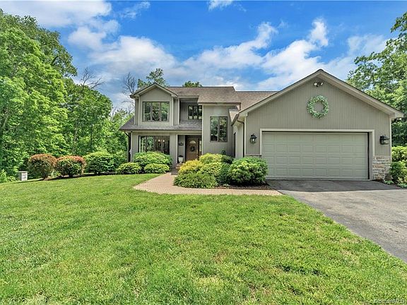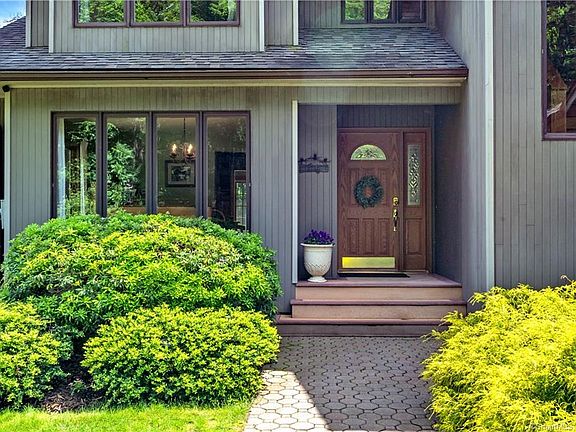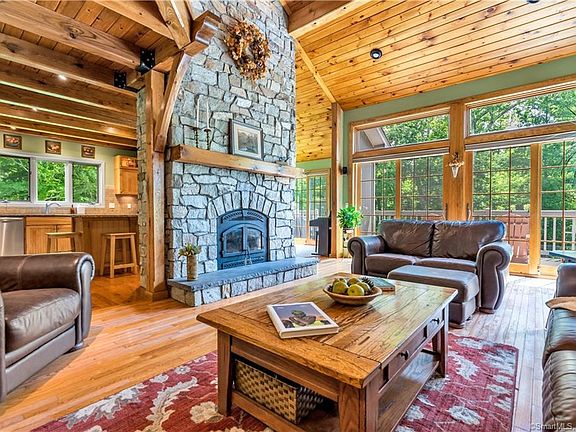 Private contemporized colonial with stunning inground pool and lush landscaping that backs up to conservation property. Cathedral liv room fireplace, wood ceiling & fan, dining room, kitchen newer birch cabinets, granite counter tops, stainless steel appliances and a wine cooler. First floor master bedrm sliders to a large deck overlooking the pool Updated master bath. Sunny family room with views. 2 Bedrooms up and an office. There is also a charming outbuilding that has electricity. This beautiful home is hard wired with a generator that stays with the house. Come enjoy this private property that has a wonderful vacation feel.