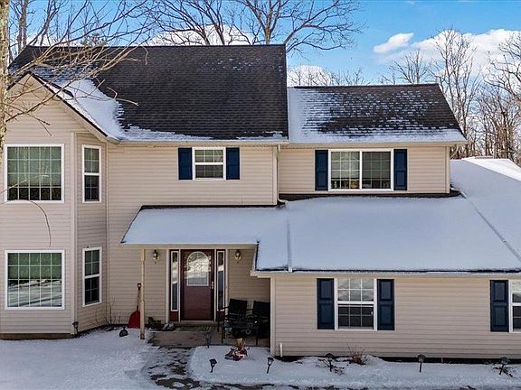 Nestled in the serene Pleasant Valley West community, this spacious 2-story Colonial sits on a picturesque 1-acre lot and is perfect for those seeking peace and tranquility. This expansive home is ideal for a multigenerational family, featuring two Master Bedroom Suites! The first floor suite includes a walk-in closet and full bath, while the second-floor suite offers its own private retreat. Thgere are two additional bedrooms and a full bath that complete the second floor. Enjoy brand-new laminate flooring throughout and a bright, open kitchen boasting newer stainless steel appliances, granite countertops, and ample counter space. The first floor also offers a formal dining room, living room, and a spacious family room with a cozy propane fireplace. The full finished walk-up attic provides a versatile space for a recreation room, home office, or extra bedroom. The attached two-car garage has plenty of space to expand. Conveniently located just a few minutes from the PA Turnpike Ramp, this home is also close to Drake’s Creek for great fishing, acres of PA State Game Lands, Historic Jim Thorpe, Big Boulder Ski Resort, Lake Harmoney, whitewater rafting, hiking, biking, and many more Pocono attractions! Don't miss out on this fantastic home in an unbeatable location!